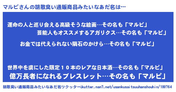 | ヒーロー風カッコイイあだ名 | 『慈愛の使者マルピ』『スーパーマルピ』 |