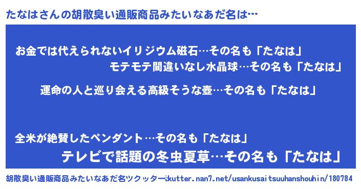 | 意味不明あだ名 | 『たなはフォーエバー』『ニラ科たなは属』 |