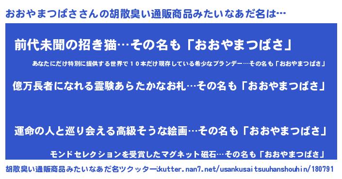| 欧米人風あだ名 | 『マイケルおおやまつばさ』 |