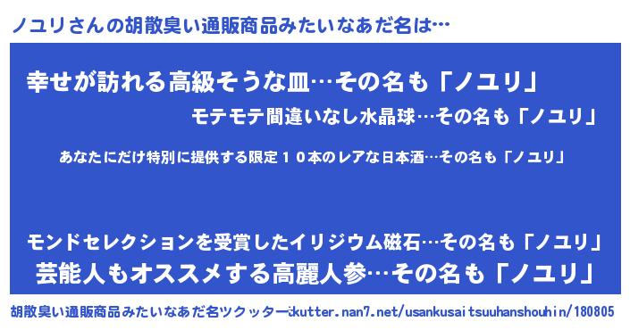 ヘコむあだ名 | 『酢こんぶ』『ノユっふぃ~』 |