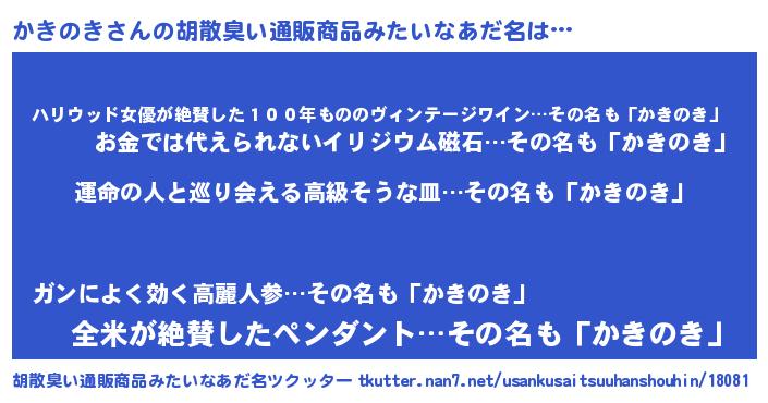 | 意味不明あだ名 | 『かきのきフォーエバー』 |