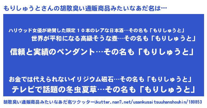 | 肩書あだ名 | 『もりしゅうとリーダー』 |