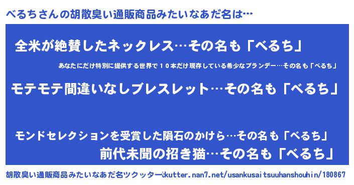 | 肩書あだ名 | 『べるちCEO』『べるち中尉』 |