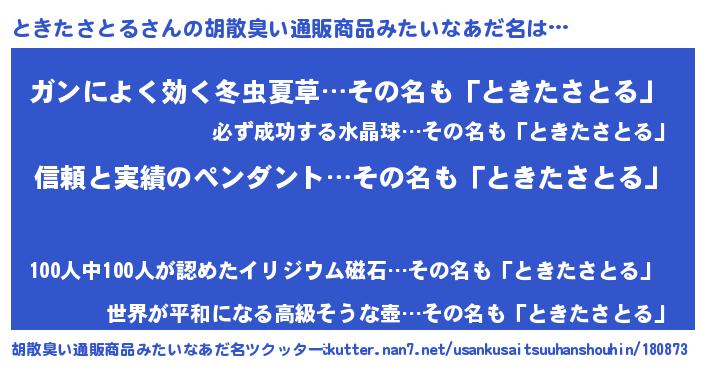 | ポケモン風あだ名 | 『トキキング』『ヒトキタサトル』 |