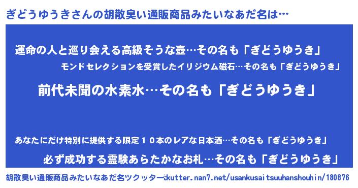 | 意味不明あだ名 | 『永久保存ぎどうゆうき』 |