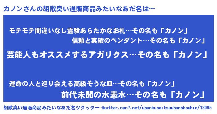 | 欧米人風あだ名 | 『トリンドルカノン』『マイケルカノン』 |
