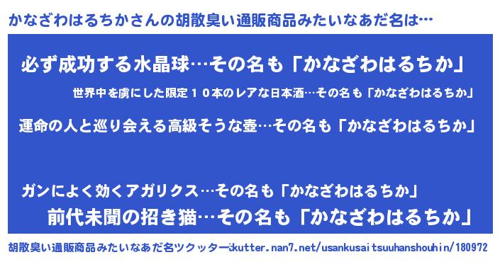 | 意味不明あだ名 | 『かなざわはるちかフォーエバー』 |