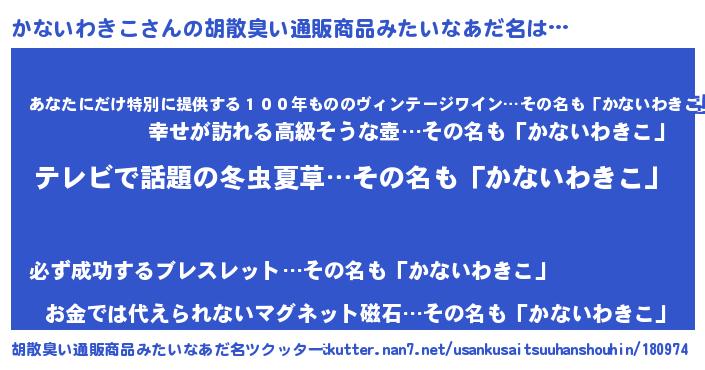 | 女子向けラノベタイトル風あだ名 | 『かないわきこアンティーク』 |