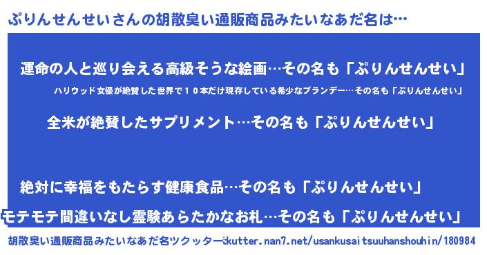 | 意味不明あだ名 | 『とにかく怪しいぷりんせんせい』 |