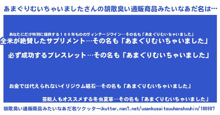 | ヒーロー風カッコイイあだ名 | 『スーパーアマグリムイチャイマシタ』 |