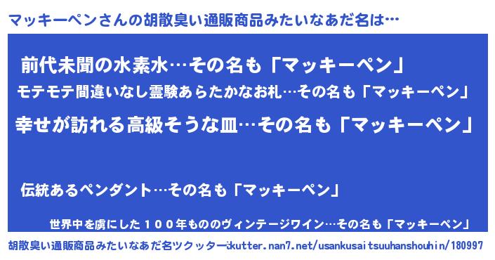 | 男性向けラノベタイトル風あだ名 | 『緋弾のマッキーペン』 |