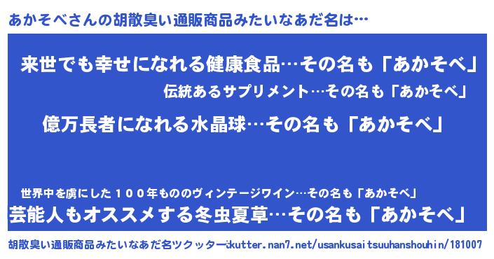 | 意味不明あだ名 | 『ペロリンあかそべ』『永久保存あかそべ』 |