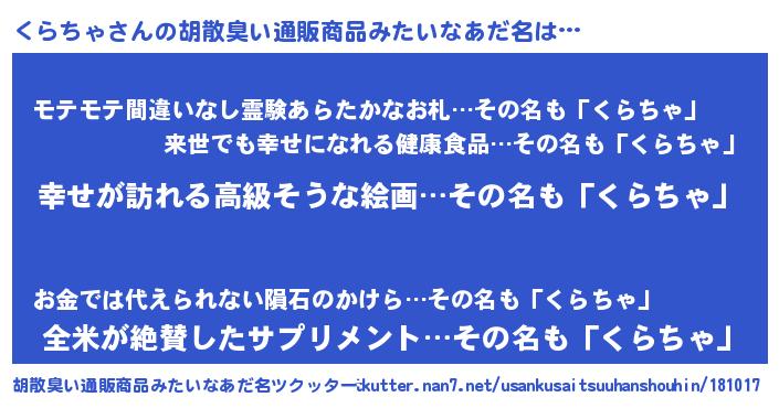 | 意味不明あだ名 | 『くらちゃフォーエバー』 |