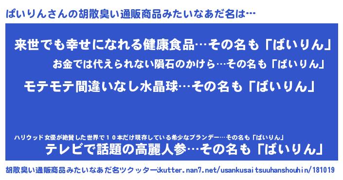 | 意味不明あだ名 | 『ペロリンばいりん』『永久保存ばいりん』 |