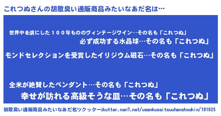 | 男性向けラノベタイトル風あだ名 | 『うちのこれつぬが世界を掌握している!』 |
