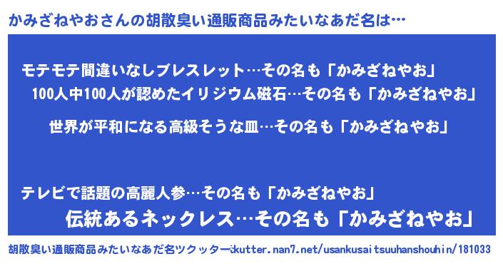 | 意味不明あだ名 | 『かみざねやおフォーエバー』 |