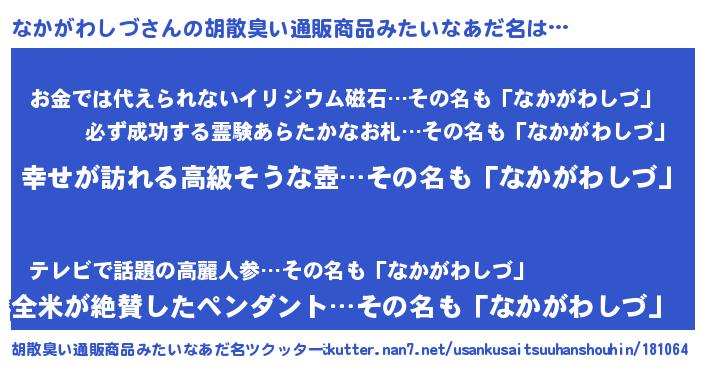 | 伝説のあだ名 | 『秘められし忍者なかがわしづ』 |