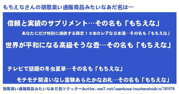 | 欧米人風あだ名 | 『もちえなクリステル』 |