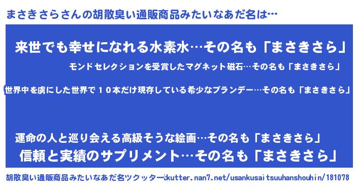 | ヘコむあだ名 | 『まさきさら(遠い目)』『まさぷりん』 |