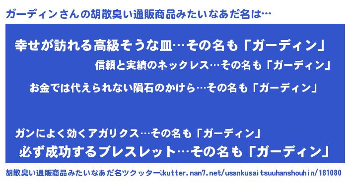| ヒーロー風カッコイイあだ名 | 『友情の使者ガーディン』『幻影騎士ガー』 |