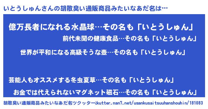| 意味不明あだ名 | 『いとうしゅんフォーエバー』 |