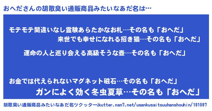 | 女子向けラノベタイトル風あだ名 | 『おへだの婚約者』『闇のおへだ』 |