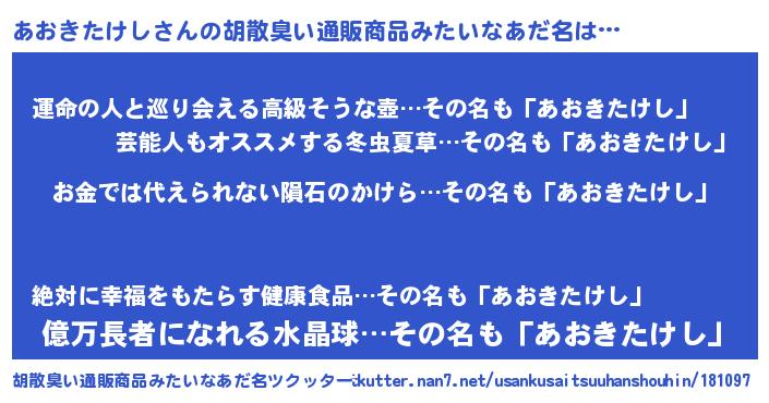 | 意味不明あだ名 | 『眠気覚ましガムあおきたけし味』 |
