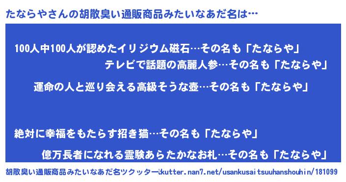 | 意味不明あだ名 | 『たならやフォーエバー』『自称たならや』 |