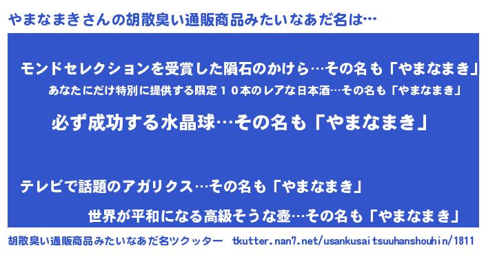やまなまきさんの胡散臭い通販商品みたいなあだ名をツクッター!