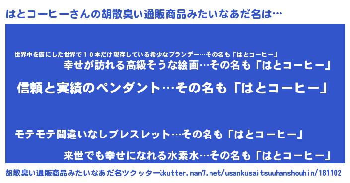 | 男性向けラノベタイトル風あだ名 | 『ハトコーヒースレイヤー』 |