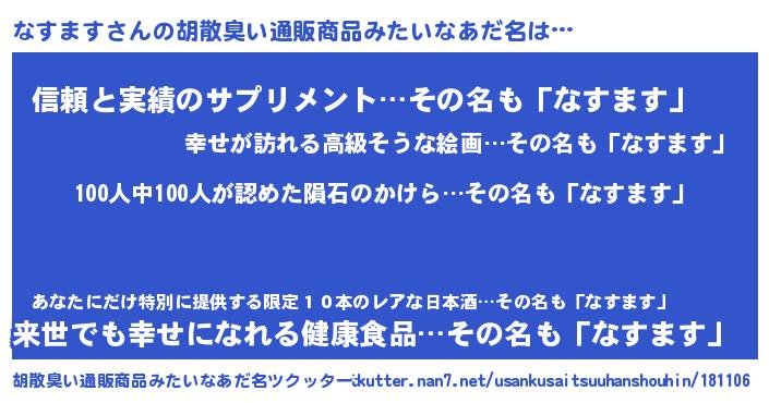 | 欧米人風あだ名 | 『ダニエルなすます』『ウサインなすます』 |