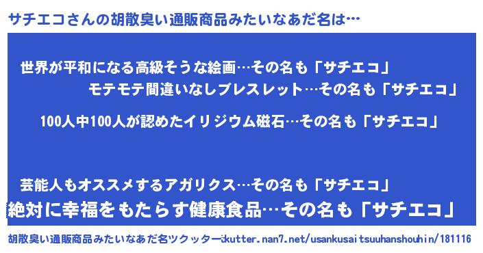 | ヘコむあだ名 | 『牛乳』『サチエコ(笑)』『サチもー』 |