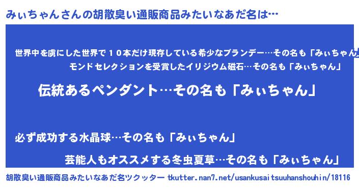 | ヘコむあだ名 | 『みぃっちょ』『みぃっふぃ~』 |