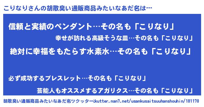 | 意味不明あだ名 | 『永久保存こりなり』『自称こりなり』 |