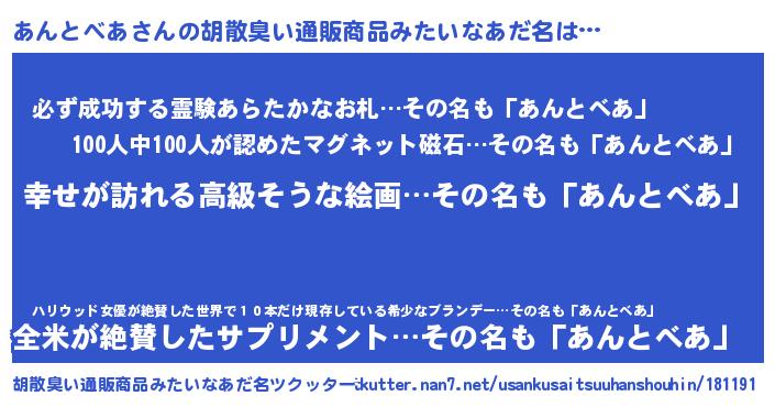 | 意味不明あだ名 | 『あんとべあフォーエバー』 |