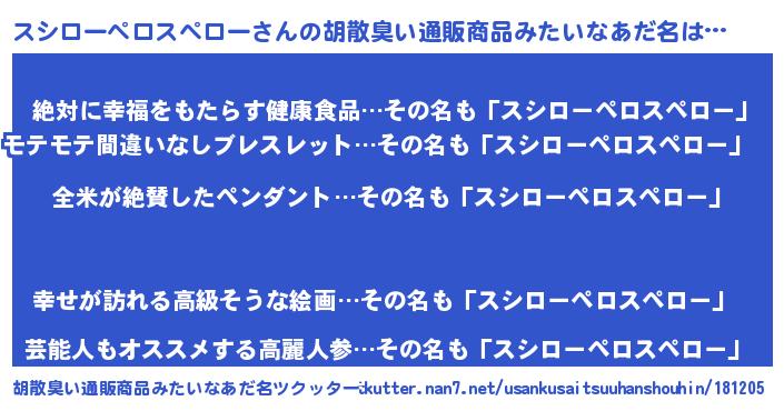 | 意味不明あだ名 | 『とにかく怪しいスシローペロスペロー』 |