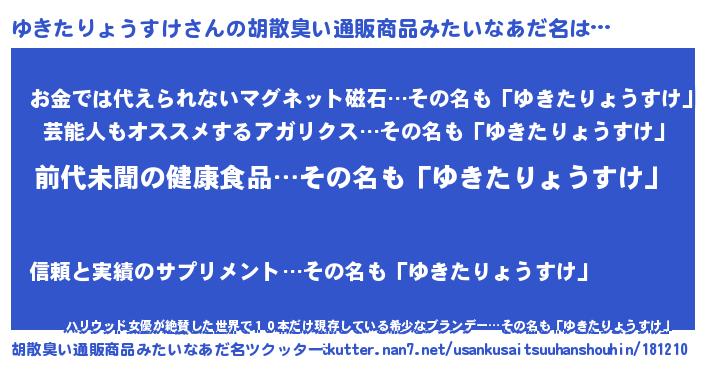 | 意味不明あだ名 | 『永久保存ゆきたりょうすけ』 |
