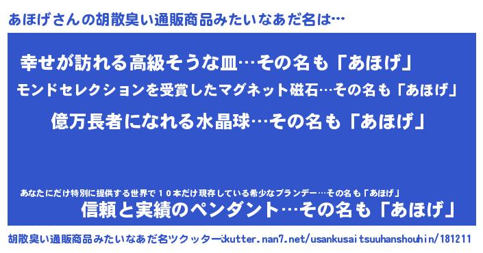 | ヒーロー風カッコイイあだ名 | 『スーパーアホゲ』『ウルトラあほげマン』 |
