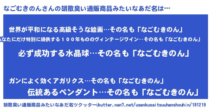 | ヘコむあだ名 | 『なごもー』『つくし』『なごお』 |