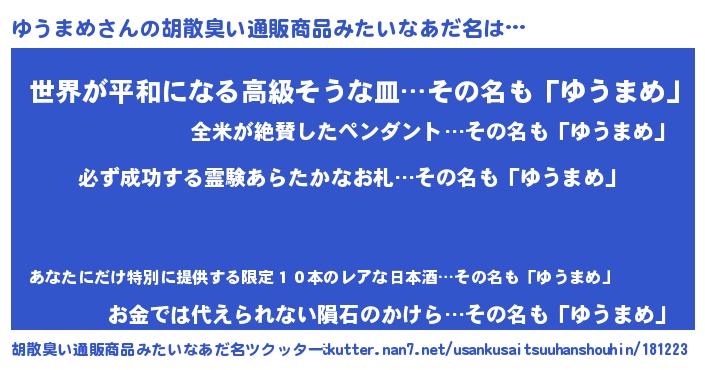 | 伝説のあだ名 | 『伝説のスナイパーゆうまめ』 |
