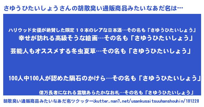 | 意味不明あだ名 | 『自称さゆうひたいしょう』 |