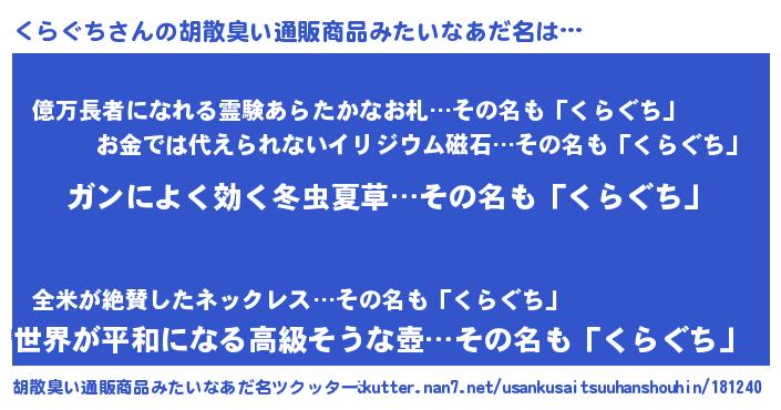 | 意味不明あだ名 | 『自称くらぐち』『ペロリンくらぐち』 |