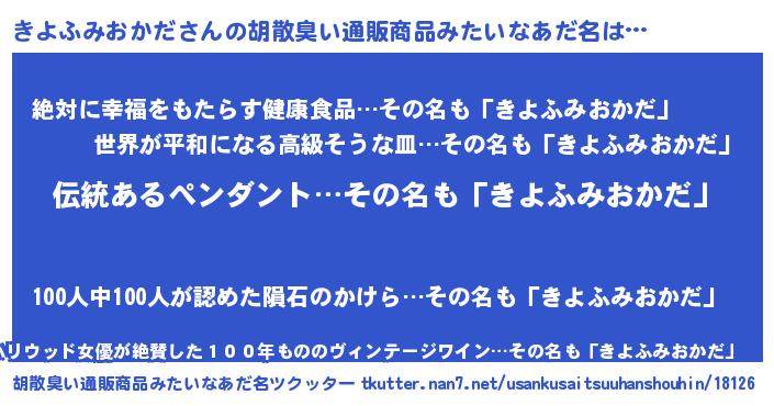 | 意味不明あだ名 | 『とにかく怪しいきよふみおかだ』 |