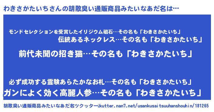 | 意味不明あだ名 | 『永久保存わきさかたいち』 |