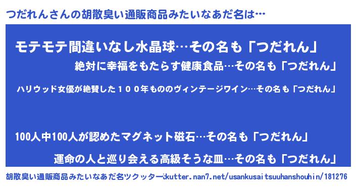 | 意味不明あだ名 | 『住所不定無職つだれん(8歳)』 |
