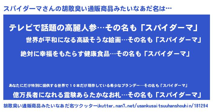 | 意味不明あだ名 | 『永久保存スパイダーマ』 |