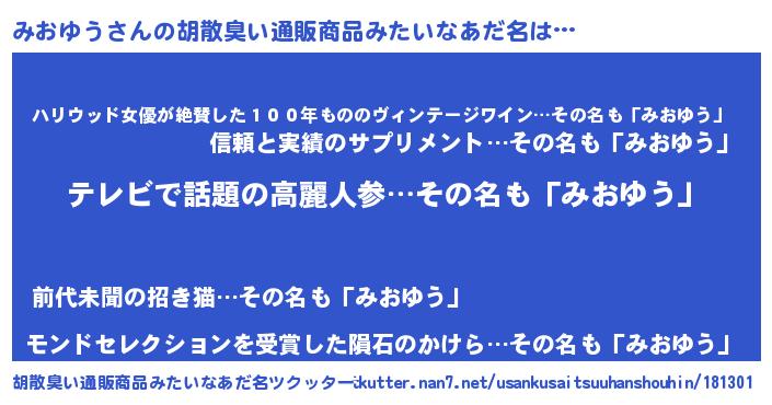 | ヘコむあだ名 | 『みおお』『みおゆう(笑)』 |