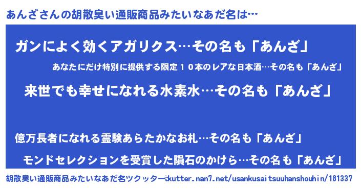 | ヘコむあだ名 | 『あんざ(遠い目)』『あんにー』 |