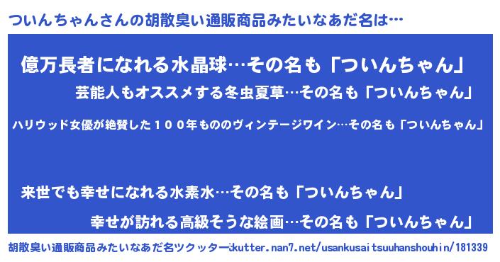 | 意味不明あだ名 | 『住所不定無職ついんちゃん(9歳)』 |