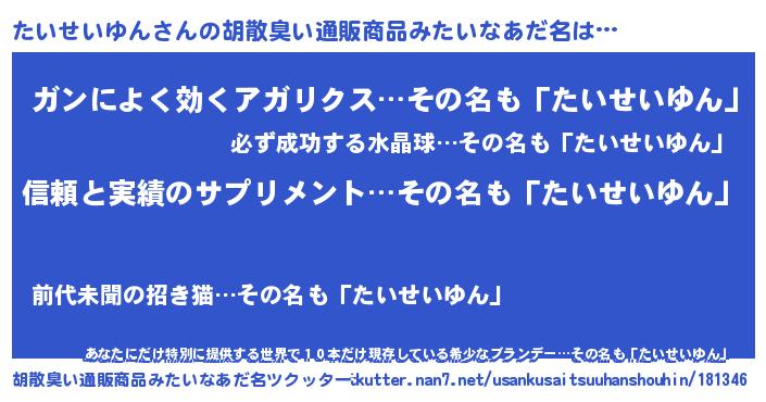 たいせいゆんさんの胡散臭い通販商品みたいなあだ名をツクッター!